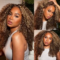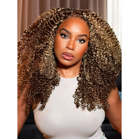 [-$100 Code:S100]13x4 Lace Front Honey Blonde Kinky Curly Sun Kissed Highlights Wig