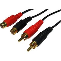 10m 2 x Phono Male to 2 x Phono Female Extension Cable Moulded Gold Plated Connectors Cable colour: Black 10 year warranty