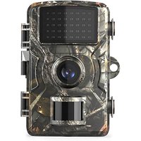 features a highly sensitive PIR sensor that can be triggered by detecting any movement of objects or animals at an impressively fast speed of 1 second. It takes clear 16MP pictures and 1080P video clips. A maximum of 9 pictures shot each time guarantees you'll never miss any unforgettable moments. This camera is mini-sized and IP65 waterproof, the perfect choice for outdoor scouting games and wildlife observation. Features: 16MP crips clear images, 1080P high-definition video resolution. 1-second fast trigger speed captures 1/3/6/9 photos of each trigger. 24pcs infrared LED lamps to provide a 65ft night vision range. Date, time, temperature, and moon phase are stamped on the bottom of the pictures and videos. Runs on 4 AA batteries, with a standby time of up to 6 months. Tough and IP65 weather-resistant, mini size and camouflage color conceal easily in an outdoor environment. Widely used in hunting, wildlife observation, home security, surveillance, and scouting game.