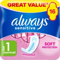 Amazingly soft top layer and unique comfort zones to ensure added comfort for your delicate skin. Ideal for normal days of your menstrual cycle. With wings that provide added side protection and help keep the sanitary towel in place. Always Sensitive Ultra Normal (Size 1) Sanitary Towels With Wings are Always Sensitive's best sanitary towels for your low to medium flow days.. Amazingly soft top layer with comfort zones for added comfort. Super absorbent Ultra core with liquid-locking gel. Super thin for comfort and discretion. With wings to keep the sanitary towel in place and added side leakage protection. Sanitary towel dermatologically tested to be gentle on skin. Individually wrapped for additional hygiene so you can carry them with you on the go. Always.