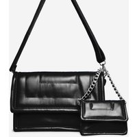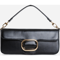 Ego Amber Hoop Detail Rectangle Shoulder Bag In Black Faux Leather, One Size -Step up your bag game doll. Featuring a black faux leather material, with hoop detailing, a rectangle shaped in a shoulder bag style.