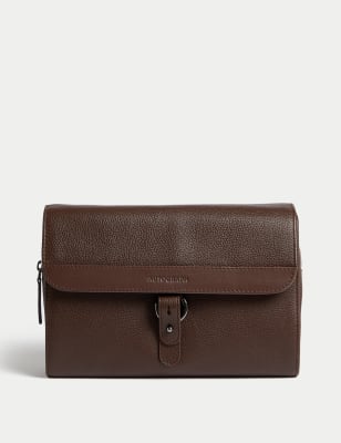 Keep your toiletries organised with this leather washbag from our Autograph collection. It has a roomy main compartment and a secure zip fastening. The pebble grain adds a soft textured feel. It's wipe clean for easy care and features a side carry handle.n Autograph: premium investment pieces featuring contemporary cuts and refined finishing touches.