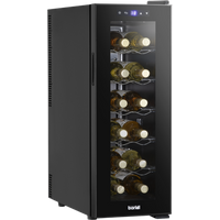 • SLEEK AND COMPACT DESIGN - Attractive tempered mirror glass door helps to reflect UV light and protect your wine while letting you see the contents at a glance.• LOW TEMPERATURE - Range between 5-18°C, controlled by touchscreen controls. Compressor cooling technology with an automatic defrost feature to make this unit as easy as possible to use.• QUIET EFFICIENCY - At a low 39dB this fridge is suitable for placing under counter or looks great on top of a kitchen counter.• VERSATILE STORAGE - Removable waved metal shelves with space for up to 28 bottles of wine. Accommodates Max. Bottle Height: 330mm. • DIMENSIONS - (W x D x H) - 430 x 450 x 840mm.Technical SpecificationEnergy Rating: GNett Weight: 22.5kgCapacity: 28 BottlesAccommodates Max. Bottle Height: 330mmTemperature Range: 5-18ºCRated Current: 0.6AVoltage: 220-240VFrequency: 50HzEnergy Efficiency Class: GNoise Level: 39dBDimensions (W x D x H): 430 x 450 x 840mmPower Cable Length: 1.8mVolume: 74LTechnical Specification:Energy Rating: G Capacity: 28 Bottles Voltage: 220-240V Energy Efficiency Class: G Noise Level: 39dB Volume: 74LDimensions: Length: 510mm x Height: 865mmWeight: 25.4KgWarranty: 1 year