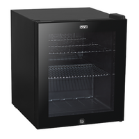 Premier 50L capacity minibar using direct compressor cooling technology to give a temperature range between 3-10C. Built-in thermostat to control temperature to user's preference. Design features two strong removable wire rack shelves, internal LED light and built-in security lock. Energy Efficiency Class E. Power Cable Length 1.9m. Ventilation Space - a minimum space of 50mm is required for the rear of the fridge and 30mm for the top and both sides. This will maximise the efficiency, performance and life of the fridge and also ensure that there is sufficient space for the hinge to operate effectively. Nett (Useable) Capacity = 46L. Premium Quality - Using direct compressor cooling technology to give a temperature range between 3-10C. The built-in thermostat can control the temperature to your preference. Great Capacity - 50 litre Size means plenty of room for beer, wine and soft drinks with space for up to 64, 330ml cans. Net (Useable) Capacity = 46L. Easy to Use - The automatic defrost feature fitted makes using this device as easy and convenient as possible. Fully Featured - Removable waved metal shelves along with reversible doors to help you position it perfectly wherever you want. Also including an LED light and built-in security lock to keep your drinks where you left them. On Counter Size - Dimensions (W x D x H) : 440 x 470 x 530mm.
