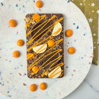 Creamy milk chocolate topped with a baileys orange truffle ganache, dried orange zest and finished with chocolate orange segments.