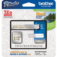 Brother TZeMQ934 12mm 1/2" gold on satin silver TZ tape PT H100 P700 2030VP 2030