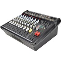 CSP Series Compact Powered Mixers with DSPPowered mixer with balanced mic/line inputs and 2 stereo inputs, each with 3-band EQ and aux send. A 16 program DSP section with tap tempo can provide vocal effects and a 7-band graphic EQ facilitates global tone control. The built-in stereo amplifier delivers ample power to drive 2 or 4 speakers for coverage in medium sized venues, offering a compact and comprehensive solution for mobile PA, bars and special events.DetailsPower supply 230Vac 50Hz (IEC)Input level +24dBuOutput level : line +26dBuFrequency response 20Hz-30kHz (0.5dB)CMRR >74dB (mic 1kHz)THD +N 85dB (fader mute), >82dB (channel)Noise rms : 22Hz-22kHz -122dBu (EIN), -82dBu (mix)EQ: high 12kHz ±15dB shelvingEQ: mid 2.5kHz ±15dB band passEQ: low 80Hz ±15dB shelvingInput impedance : mic (balanced) 2k OhmsInput impedance : line (balanced) 10k OhmsSensitivity : mic -60 to +14dBuSensitivity : line -40 to +14dBu2-track 2 x RCA in & out (-2dBu)Effects 16 program DSP (24-bit sigma-delta, 40khz)Output impedance