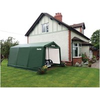 With a length of 32 feet, this superb quality XL garage / workshop offers shelter and protection for larger vehicles such as vans, camper vans or farming equipment. It can also be used to protect your pride and joy, whether it be a boat or a car from the elements, while also being great for site storage for builders and extra storage for schools, businesses and local authorities. Tough triple layer 305 g/m², waterproof, woven polyethylene fabric. Fully UV treated (with added fade blockers, anti-fungal and anti-yellowing agents) for protection against sun and rain. 32 Foot Length - Manufactured for use with larger vehicles such as vans, boats and campervans. Ratchet Tight Cover Tensioning - Quality ratchet & web strap components ensure a drum tight cover & door panel connection to shelter frame, keeping the cover tight and neat looking. Heavy Duty 1 1/2" Diameter Powder Coated Steel Main Frame Tubing - A highly durable powder coat is baked on to the tube frames to protect against peeling, rusting, chipping and corrosion. Simple Push-Fit Connections - Poles simply push together for quick, easy assembly. Cross Rails – For Continuous Cover Tightening - Brackets allow easy access to pressure points for optimal cover tightening.