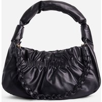Escape Braided Detail Ruched Shoulder Bag In Blue Faux Leather,, Blue