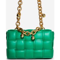 Estela Chain Detail Woven Shoulder Bag In Black Faux Leather,, Black