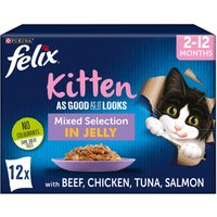 With the choice of beef, salmon, chicken or tuna, your senior cat is sure to enjoy mealtime even more! Our delicious FELIX As Good As It Looks Senior Cat Mixed Selection in Jelly provides essential support to your senior cat, keeping his healthy and active in his senior years, PURINA vets and nutritionists have specially formulated FELIX As Good As It Looks Senior Cat Mixed Selection in Jelly to include essential nutrients your cat needs, and our recipes are a great way to meet the dietary requirements of your cat, whilst providing his with lots of delicious flavours he will love.. Packed with all the flavours your cat will enjoy. We include minerals and vitamins D & E to keep your cat supported. Our cat food is great for senior cats that need caring for in their later years. 12 assorted meals served in individual pouches for convenience. Complete cat food to support your senior cat as he grows older. FELIX.