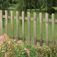 Perfect as a front garden boundary or other low-level fence run, the eye-catching Forest 6 x 3 Pressure Treated Contemporary Picket Fence Panel (1.83m x 0.9m) adds an attractive modern twist to traditional palisade fencing.Expertly made from premium timber, this picket fencing is pressure treated and supplied with a superb 15-year anti-rot guarantee. No further treatment is required, saving you money and leaving you more time to enjoy your garden. The wood used to build this fencing is PEFC-certified, which is sourced from socially-responsible, sustainable sources.Arranged in an eye-catching staggered pattern, this fence panel's wooden slats are rounded off with a sumptuous smooth-planed finish. Not just robust, rot-proof and ethically sourced, this garden fencing is exceptionally attractive too.Please be advised that we also stock a wooden gate in the same stylish design as these picket fence panels, allowing you to complete your perfect fence run.Garden fencing delivery is free to most UK postcodes on orders above £100.Superb 15-year anti-rot guaranteePressure treated to prevent rotPEFC-certified woodSumptuous smooth-planed finishMatching gate available tooFree delivery to most UK postcodes on orders above £100