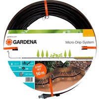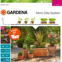 Gardena Micro Drip irrigation starter kit designed for terraces and balconies. Includes 10 metres of irrigation pipe and equipment for watering up to five plant pots. A flexible, easy to use and customisable irrigation system, this Micro Drip starter kit can be extended to cover up to fifteen plant pots and can additionally be used with a water computer (sold separately) for automatic control. Please note you may require a separate length of hose and connectors to connect your tap to the start of the Micro Drip system.Features & Benefits:• Water saving drip irrigation for 5 plant pots.• Quick and easy to install. • 0-10 litres per hour.• Ideal for terraces and balconies.• Can be extended to cover up to 15 plant pots.• Can be automatically controlled if used in conjunction with a water computer (sold separately).Includes:• 1 Hose Connector Adapter 917• 1 Master Unit 1000• 10 metre Supply Pipe• 5 Adjustable Endline Drip 0-10 l/h• 1 End Cap 4.6mm (3/16")• 5 T-Pieces 4.6mm (3/16")• 5 Pipe Pegs 4.6mm (3/16") Made in Germany.