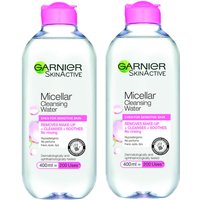 Garnier Micellar Water Facial Cleanser Delicate Skin and Eyes 400ml Duo Pack