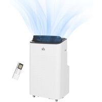The summer heat can be unpredictable, which is why you need a multi-functional cooling unit to match. Bring in this HOMCOM air conditioning unit for home which does four jobs. Our ac unit has cool, ventilate, dehumidify, auto, sleep mode. 'Cool' keeps the area at a constant temperature, 'ventilate' controls the fan speed, 'dehumidify' dries out the moisture in the air, 'auto' setting cool or ventilate mode according to temperate, and 'sleep' runs in a quiet way.Features:Three ways to control: smart WiFi App(TUYA), remote and with LCD control panelFour modes: Cools, dehumidifies, ventilates and sleeps (quiet operation)Two speeds and adjustable 16-31℃ temperature24-hour timer off to turn off at a time you wantFour wheels on the base to move the unit around easilyRemovable and washable filter, with self-evaporating systemIncluded pipe to drain the water, warning when water fullSliding window kit included, exhaust pipe is retractable. Assembly required