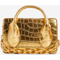 Ego Jarline Chain Detail Top Handle Tote Bag In Green Croc Print Faux Leather, One Size -Complete your OOTD with a pop of colour doll. Featuring a green croc print faux leather material, with chain detailing, a top handle, in a tote bag design.