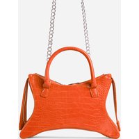 Ego Kennedy Shaped Shoulder Bag In Orange Croc Print Faux Leather, One Size -Add a pop of colour to your look doll. Featuring an orange croc print faux leather material and a shaped shoulder bag design.