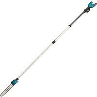 The DUA301 is a Telescopic Pole Saw, with a 300mm length bar, powered by two 18v Li-ion LXT slide type batteries, to supply energy to the powerful brushless 36v motor. It features a soft start for smooth start ups and variable speed controlled by trigger to enable the user to match the speed to the application. The motor is located in the battery housing and so reducing the saw head weight, allowing for easier control of the saw head, reducing user fatigue. The overall length without guide bar of the tool is adjustable from approx 2.6m to 3.8m. Features & Benefits • Captive nuts prevent loss of nut when removing sprocket cover • Chain oil tank with high transparency allows to easily check the amount of oil • Designed to provide high performance similar to 30ml class engine pole saws • Electric brake • Excellent tool balance • High operating efficiency • Integrated branch hook • Retractable oil tank cap decreases the chance that the saw head will snag • Slim saw head • Soft start • Tool less pole extension and fixing • Torque boost mode • Variable speed control Specifications • Battery Voltage: 36v (18v x2) • Battery Type: LXT Lithium Ion • Bar Size: 300mm • Chain Gauge: 0.050" • Chain Oil Capacity: 160ml (cm³) • Chain Pitch: 3/8" • Chain Speed: 0-20m/sec • Noise K Factor: 3 dB(A) • Noise Sound Power: 103 dB(A) • Noise Sound Pressure: 92 dB(A) • Vibration K Factor: 1.5m/sec² • Net Weight: 7.8-8.5kg Contents • DUA301 Cordless Telescopic Pole Saw • Saw Chain • Hex Wrench • Wrench • Band Assembly • Guide Bar • Guide Bar Cover • Round File • Oil Supply • BL1850B 18v Li-ion 5ah Battery (x2) • DC18RD Li-ion 18v Dual Port Charger