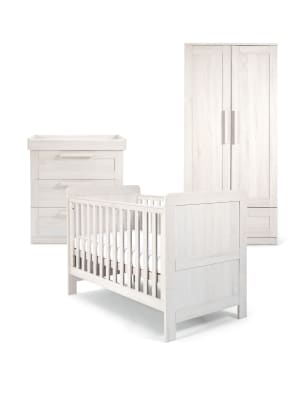 Mamas & Papas Franklin 3 Piece Cotbed Range with Dresser and Wardrobe - White, White