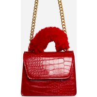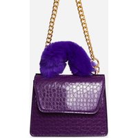 Ego Parla Green Faux Fur Top Handle Cross Body Bag In Pink Croc Print Faux Leather, One Size -Girl, always go for the bold option. Featuring a pink croc print faux leather material, with a faux fur top handle in a cross body bag design.
