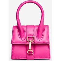 Payee Clasp Detail Top Handle Mini Bag In Purple Faux Leather,, Purple