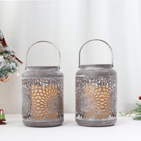 RTS Decent Set of 2 13”&19.5”Tall Outdoor Candle Lanterns Vintage Hanging Tower Lantern Metal Candle Holder for Garden Balcony