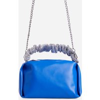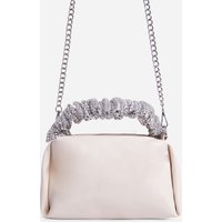 Tallulah Diamante Ruched Handle Cross Body Bag In Silver Faux Leather,, Silver