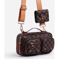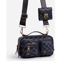 Tate Multi Pocket And Purse Detail Cross Body Bag In Black Snake Print Faux Leather,, Black