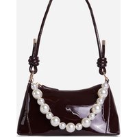 Valley Pearl Detail Knotted Strap Shoulder Bag In Black Patent,, Black