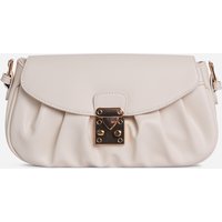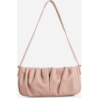 Weekender Ruched Detail Baguette Shoulder Bag In Nude Faux Leather,, Nude
