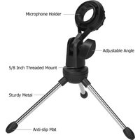 ammoon MS-12 Mini Foldable Adjustable Desktop Tripod Microphone Stand with MC3 Mic Clip Holder Bracket for Meeting Lectures Podcasts